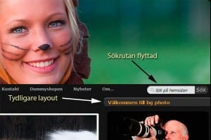 Sökfunktionen har nu flyttas till menyraden för bättre tillgänglighet. Rubrikerna i högerkolumnen har fått ett mer tydligt utseende.