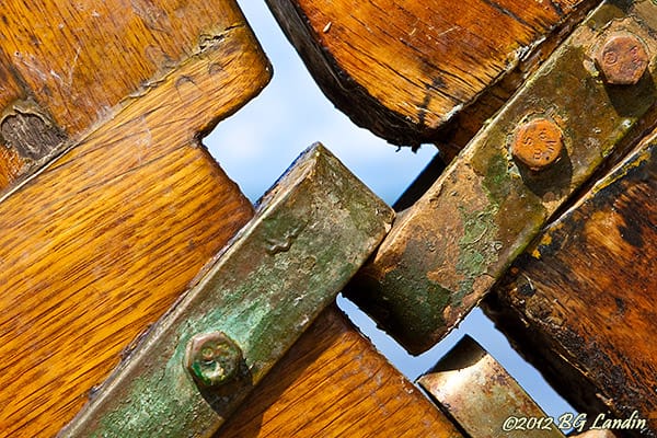 Roderinfästningen på kostern Yvonne lyser vackert i sommarsolen och i bakgrunden kan man denna vackra sommardag skönja den inbjudande himlen genom mellanrummen mellan roder och båtskrov. Fernissan på träplankorna i rodret framhäver fint ådringen i trät och metalldetaljerna i koppar har visserligen ärgat något genom åren men har ändå stått sig bra. Yvonne byggdes 1910 på Ängholmens varv i Långedrag för att vara Alingsås Segelsällskaps utlottningsbåt. Den först personen att vinna båten var en grosshandlare Nils Lindqvist från Göteborg, som var sommargäst vid Mjörn. Nils Lindqvist säljer Yvonne efter några år och genom åren har hon tillhört många olika ägare men har nu åter kommit tillbaka till sin ursprungshamn i Alfhem utanför Alingsås. Här finns fler blandade bilder.