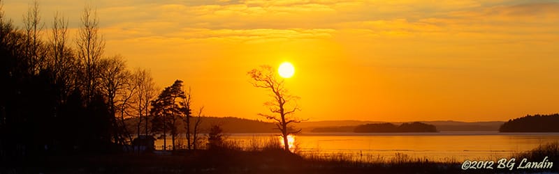 De senaste vinterdagarna har det varit flera magnifika solnedgångar och på bilden är solen sakta men säkert på väg ner under trädtopparna i sydvästra delen av Mjörn. Det finns inte mycket vass vid Playa Mjörn men i området närmast piren har några enstaka vasstrå lyckats överleva i sandens magra jordmån. Snön och isen får en blåaktig ton i under några timmar i anslutning till solnedgången och vassen blir upplysta upp av det orange kvällsljuset. Isen ligger i stort sett över hela Mjörn och där det ser ut att vara öppet vatten en bit ut är det i själva verket blankis, där snön inte fått fäste på isen. För att få bra teckning både i snön och samtidigt få en intensiv solnedgång tog jag tre bilder med olika exponeringar och la samman dessa till en HDR-bild. Här finns fler naturbilder.