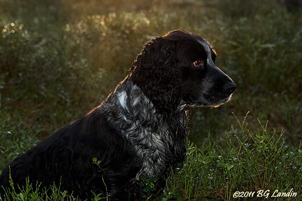 Den ständigt ungdomlige och busige cockergrabben Jiep har en förmåga att lägga huvudet på sned och titta bedjande med sina vackra ögon. Vem kan motstå dessa cockerögon även om det finns en viss misstanke att det innanför pannbenet finns lite av en ”teflonhjärna”. Det är lite elakt att säga så men Jiep har en helt makalös förmåga att förtränga vissa saker vi kommit överens om medan han har en lika makalöst minne för andra detaljer. Givetvis är det detaljer han känner gynnar honom själv och ger omedelbar utdelning. När han sedan blir påmind om det han för stunden förträngt ser han oerhört skuldmedveten ut. Sen skuttar han iväg sorglös i hågen och ibland händer det till och med att han kommer ihåg det vi pratade om flera minuter efteråt. Detta ger många fina tillfälle till tålamodsträning – för hundägaren. Bilden togs med två blixtar med paraplyreflektorer och med EF 70-200 på kort avstånd vilket ger ett härligt kort skärpedjup och framhäver Jieps fina ögon. Här finns fler bilder på Jiep.
