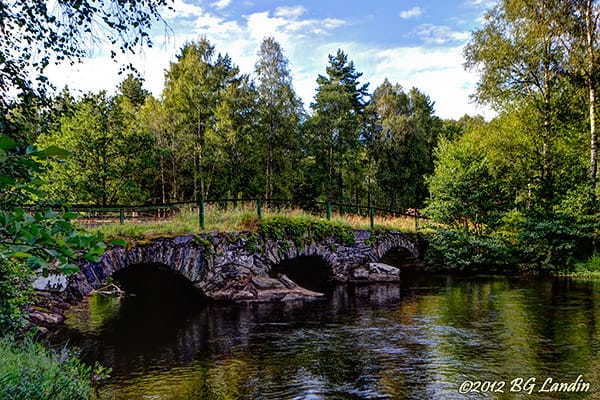 Nårska bro är en gammal kulturhistorisk landsvägsbro av valvtyp i tre spann med huggen sten över Säveån vid Nårunga. Förmodligen kommer stenarna i bron från odlingsmarken i närheten, som rensats från sten för att få mer odlingsyta. Parallellt med den gamla bron har en ny bro byggts, som idag används av trafiken. Den gamla bron är dock ett betydligt trevligare blickfång med sina tre spann under vilka Säveån flyter stilla fram. I anslutning till Nårska bro finns en cache för dom som är intresserad av geocaching. Bilden består av tre separata exponeringar med två stegs exponeringsskillnad, som lagt samman i Photmatix. För att få till himlen har bilderna dessutom underexponerats ett steg. Här finn fler naturbilder.
