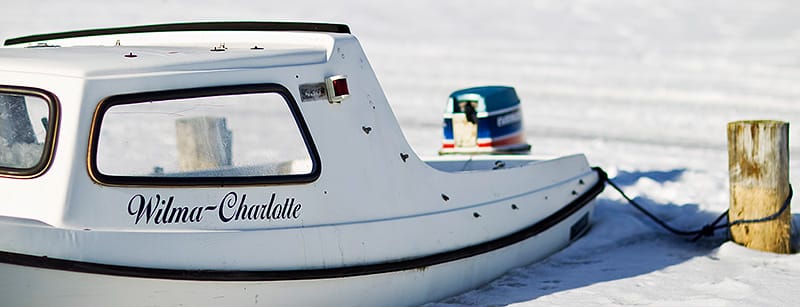 Den öppna motorbåten ligger kvar i småbåtshamnen i Gräfsnäs och motorn sitter kvar trots att det är i mitten av mars och isen ligger tjock på Anten sedan före jul. Kanske är det så att man är väldigt tidigt ute eller så kanske man inte riktigt hann med i svängarna när vinterkylan dök upp under slutet av förra året. Det är inte enda båten i hamnen som är redo för vårturen utan ytterligare några båtar ligger i startgroparna så snart isen bara släpper. Förhoppningsvis har både skrovet och motorn klarat sig och startar när det är dags för vårens jungfrutur, vilket i så fall är ett gott betyg för tillverkarna. Här finns fler blandade bilder.